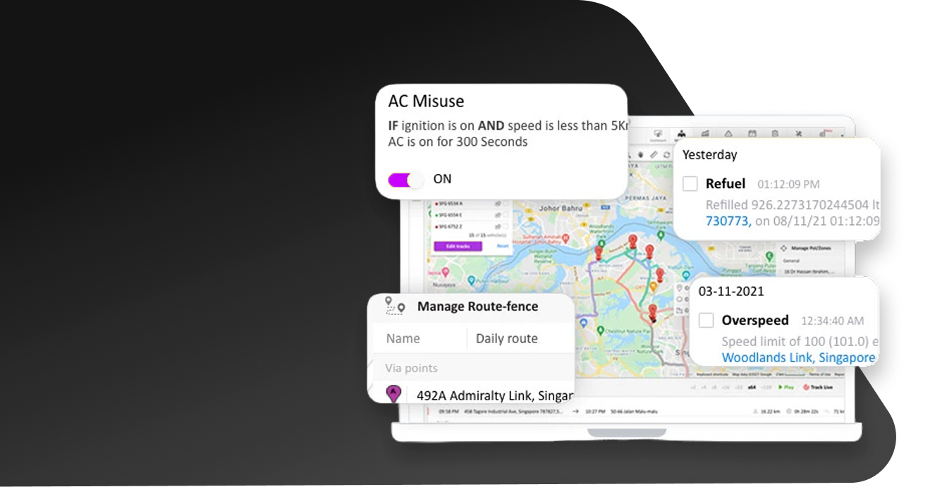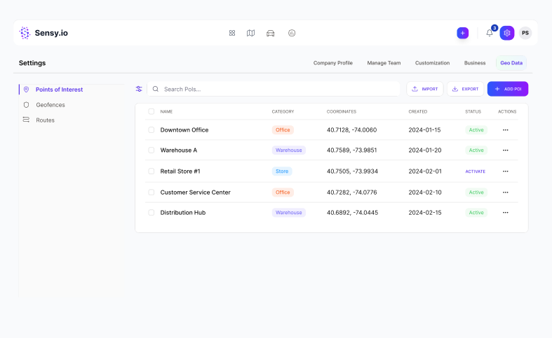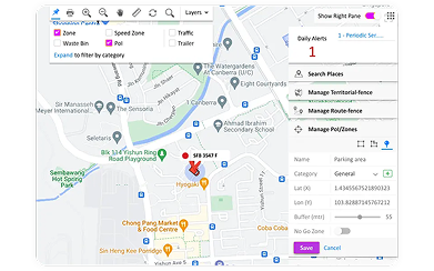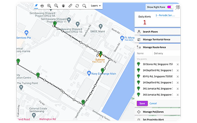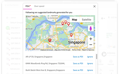 Plot important business points like warehouses, delivery stops, or offices. Set alerts when vehicles enter or leave a PoI for better tracking and control.