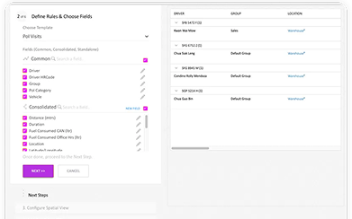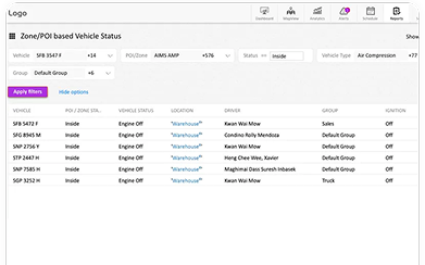 Generate reports based on PoIs, including visits, round trips, and vehicle status. Use insights to optimize fleet assignments.