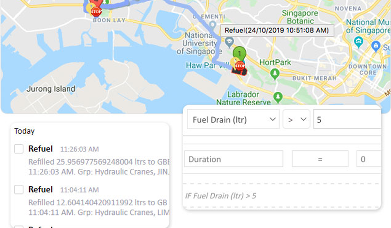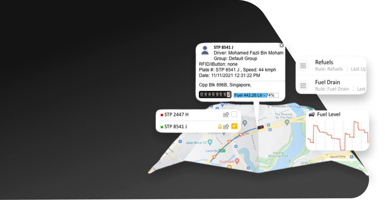 Set alerts for high/low fuel levels, refueling, and drains. Track locations on the map and reduce misuse, theft, and wastage efficiently.