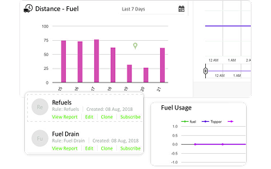 Generate detailed reports and charts for trips, fuel, and maintenance. Use actionable insights to improve operations and reduce costs.