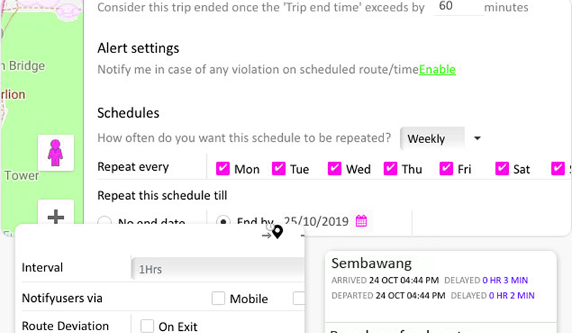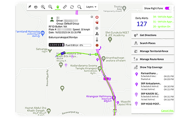 Get notifications for early/late arrivals, departures, route deviations, and excessive stoppages via mobile, email, or pop-ups.